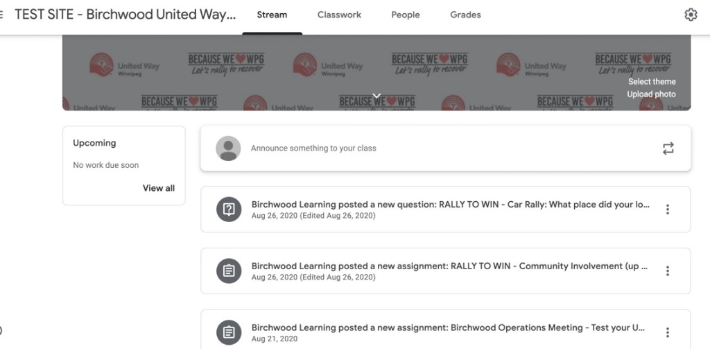 Secondly, it was noted at this time of review that students have the autonomy to create their own unique usernames. Upon registration you are pushed into the classroom stream as your home page. This will be your normal classroom view separated by “stream”, “classwork”, “people” and “grades”. One of the most useful pieces of the Goggle Classroom experience is the Stream which allows students to view announcements, participate and communicate in a collective experience.