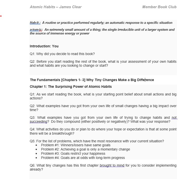 - Structured Reading and Discussion Sessions: The project is structured into weekly sessions, each focusing on specific chapters of the book. These sessions include guided discussions, helping members to dissect and internalize the core concepts of habit formation.